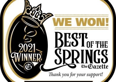 We’re thankful to our clients and business partners for nominating us for Best of the Springs. We’re honored to be recognized as the best in our field along with the other outstanding businesses in Colorado Springs and look forward to continuing to serve and contribute to our community.
